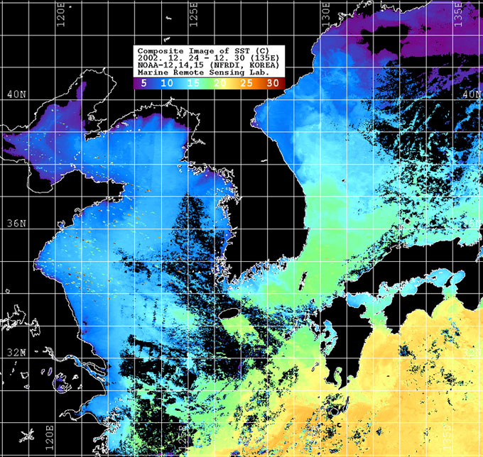 | 위성 수온 영상(2002. 12. 24~ 12. 30) | |||||