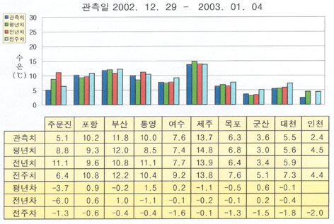 o 일부 서해 인접연안이나 만 내에서는 찬기온의 영향을 받아 해수가