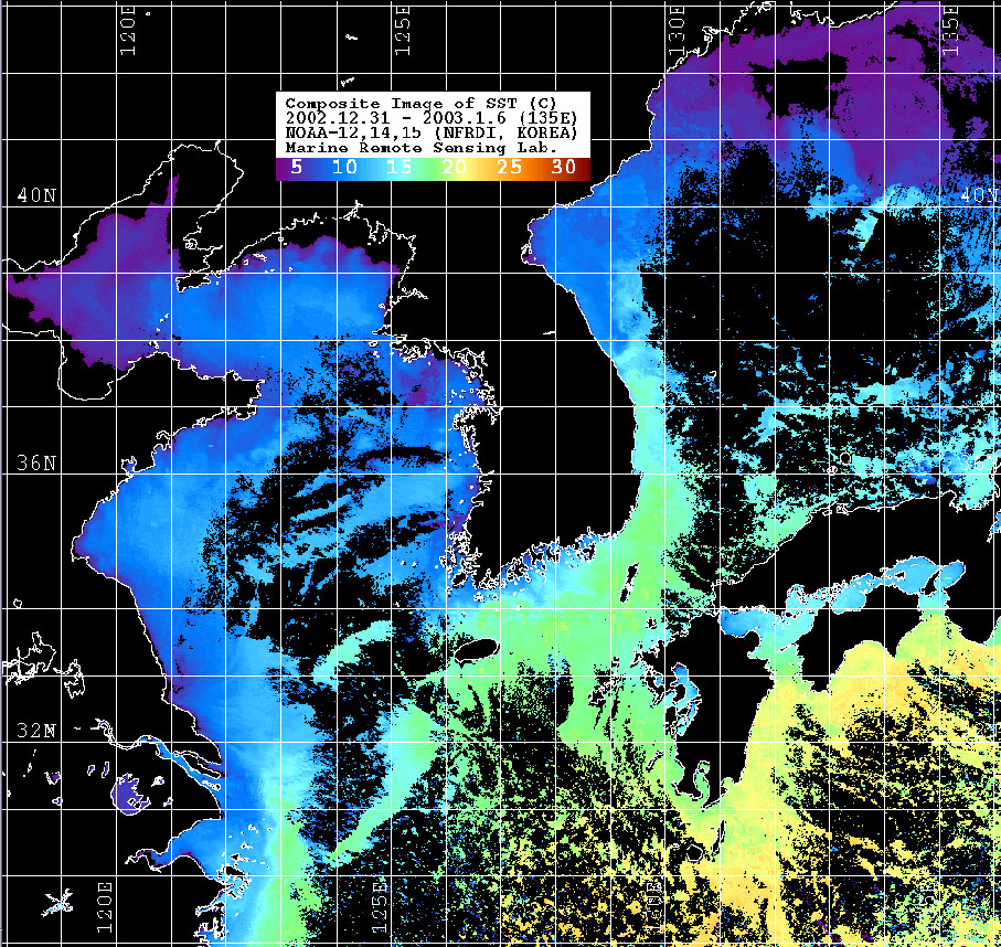 | 위성 수온 영상(2002. 12. 31~ 2003. 1. 6) | |||||