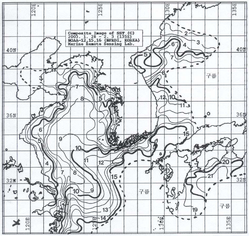 o 아래 그림은 2003년 1월 28일부터 2월 3일 까지 합성한 위성추정