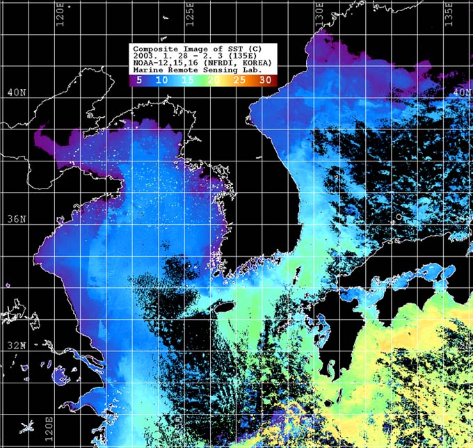 | 위성 수온 영상(2003. 1. 28~ 2. 3) | |||||