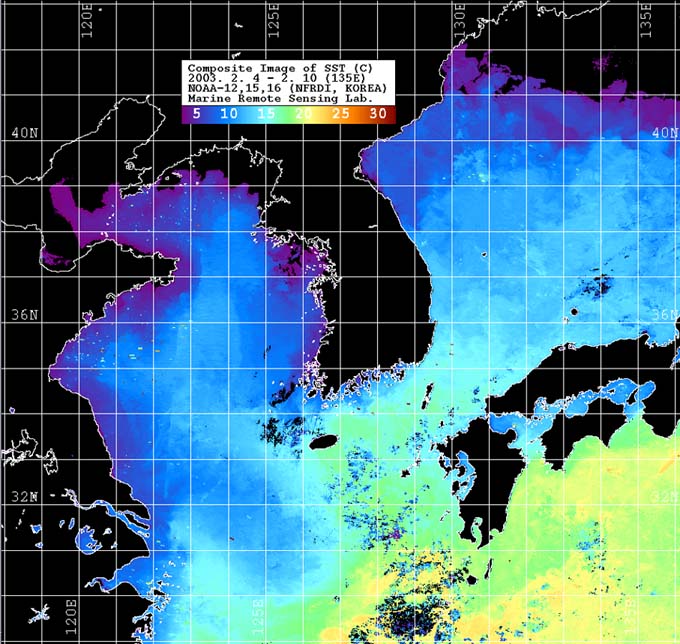 | 위성 수온 영상(2003. 2. 4~ 2. 10) | |||||