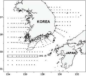 ㅇ 2003년 2월 14일 국립수산과학원 해양연구과에서 조사한