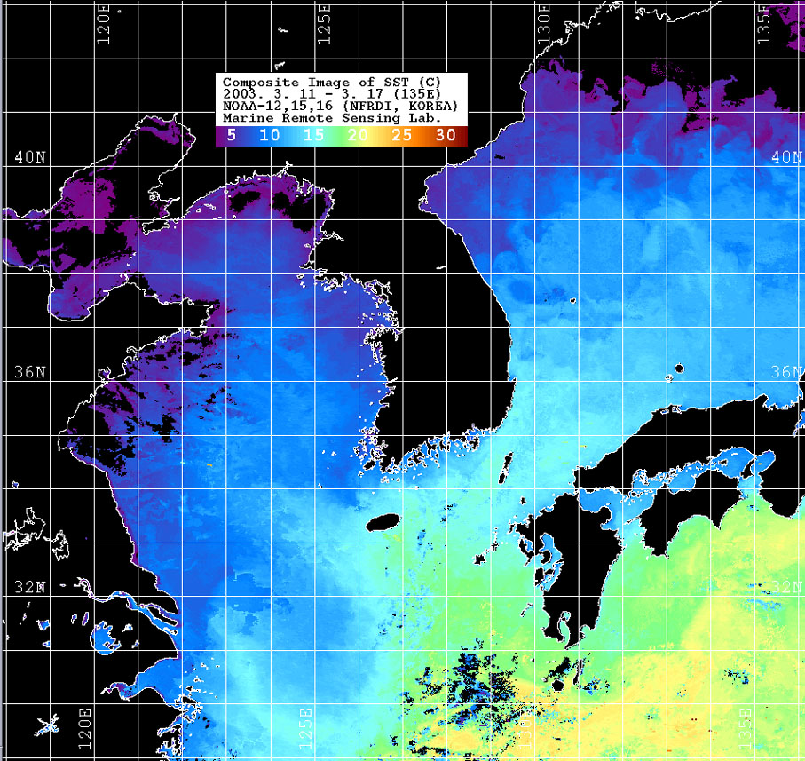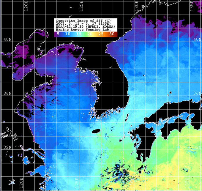 | 위성 수온 영상(2003. 3. 11~ 3. 17) | |||||