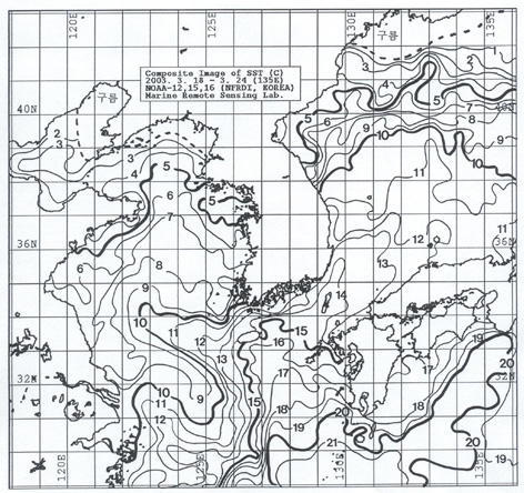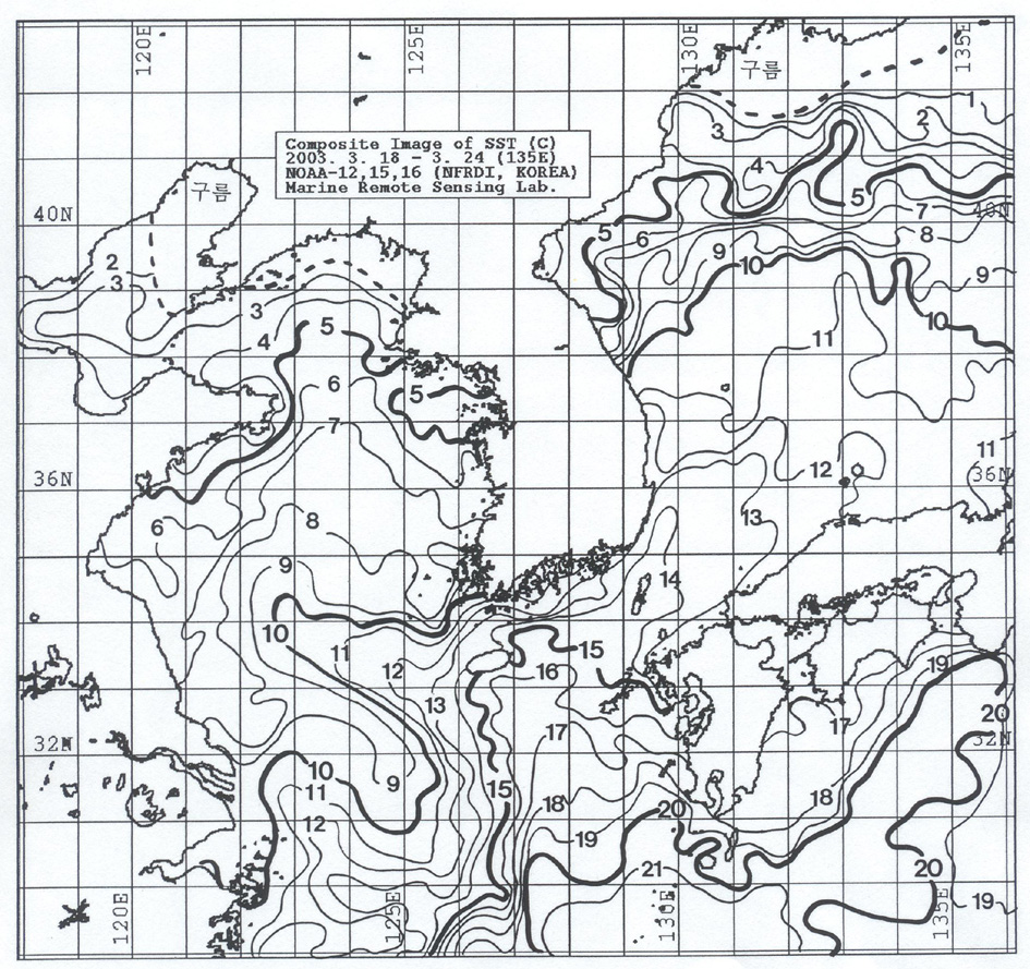 근해 14∼16도, 이어도 근해 9∼10도, 일향초 근해 8∼10도, 어청도 근해