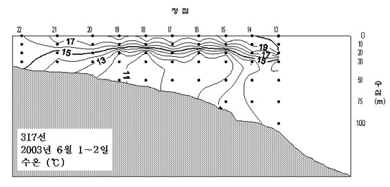 o 2003년 6월 1∼2일 국립수산과학원 해양연구과에서 조사한 317선(동중국해 북부해역)의