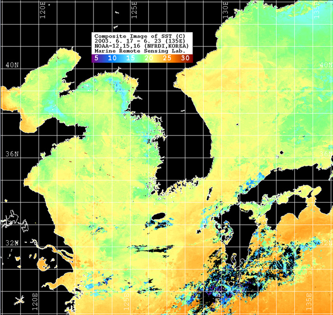 | 위성 수온 영상(2003. 6. 17 ~ 6. 23) | |||||