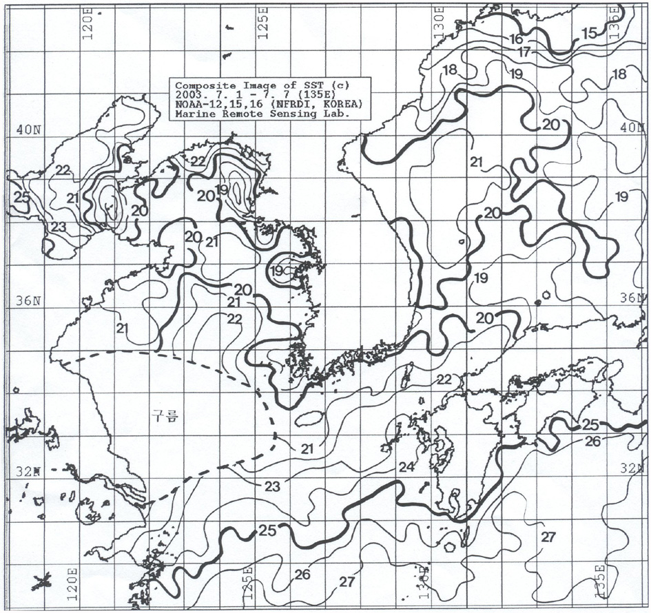o 아래 그림은 2003년 7월 1일부터 7월 7일 까지 합성한 위성추정