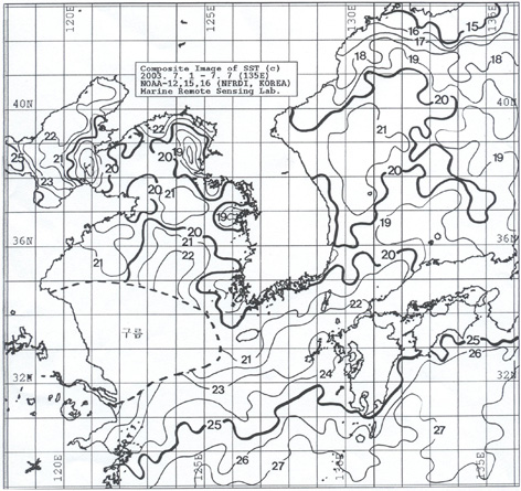 21∼22도, 이어도 근해 22∼23도, 일향초 근해 20∼21도, 어청도 근해 19∼20도