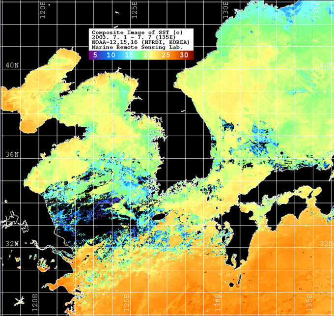 | 위성 수온 영상(2003. 7. 1 ~ 7. 7) | |||||
