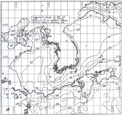 o 아래 그림은 2003년 7월 8일부터 7월 14일 까지 합성한 위성추정