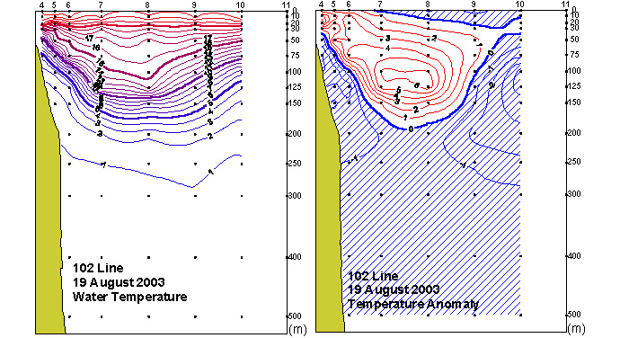 ㅇ 2003년 8월 19일 국립수산과학원 동해수산연구소에서 조사한 102선(포항 동방)의