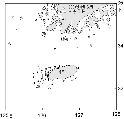ㅇ 2003년 8월 24일 국립수산과학원 자원조성연구소에서 조사한 제주도 서부해역