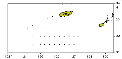 o 2003년 8월 22∼25일 국립수산과학원 해양연구과에서 조사한 동중국해