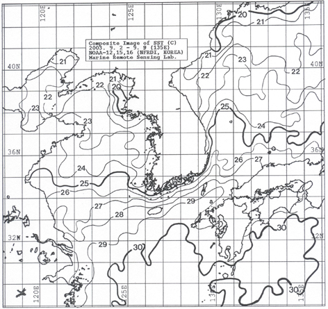 o 아래 그림은 2003년 9월 2일부터 9월 9일 까지 합성한 위성추정