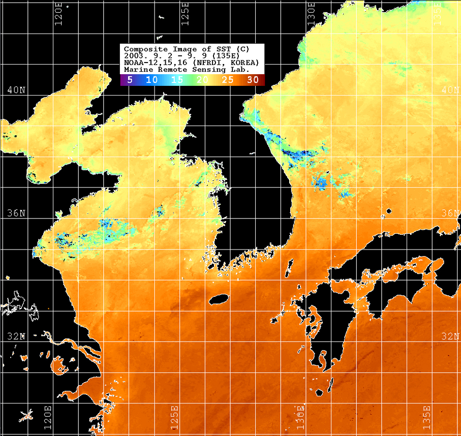 | 위성 수온 영상(2003. 9. 2 ~ 9. 9) | |||||