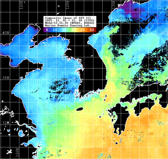 | 위성 수온 영상(2003. 12. 2 ~ 12. 8) | |||||