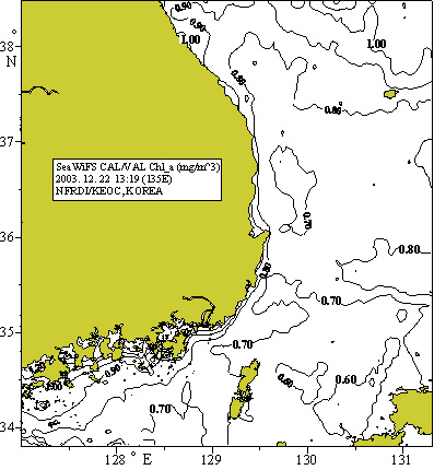 o 아래 그림은 2003년 12월 22일 위성추정 기초먹이생물량 분포도입니다.