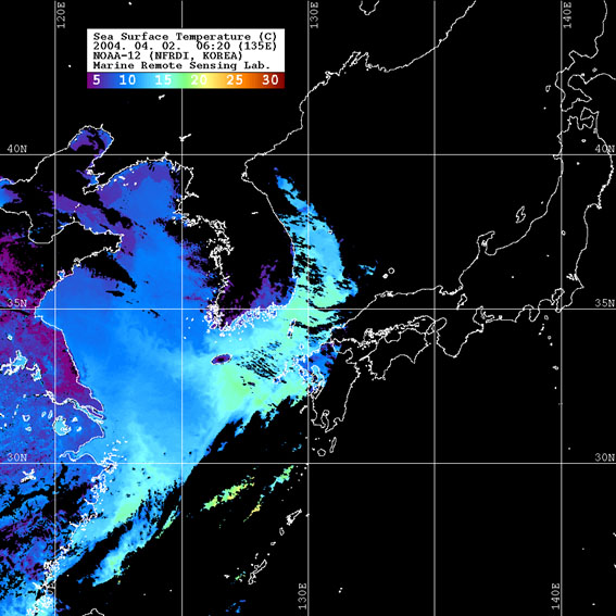 더 많은 위성 수온영상자료(1996년-현재)는 해양원격탐사실 홈페이지로