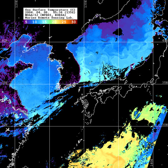 더 많은 위성 수온영상자료(1996년-현재)는 해양원격탐사실 홈페이지로