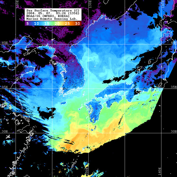 더 많은 위성 수온영상자료(1996년-현재)는 해양원격탐사실 홈페이지로