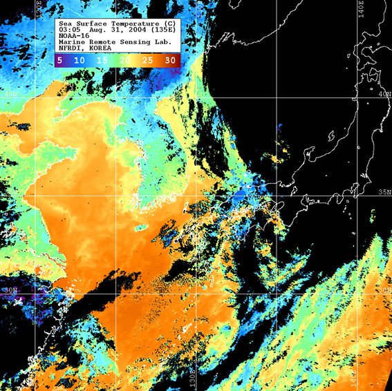 더 많은 위성 수온영상자료(1996년-현재)는 해양원격탐사실 홈페이지로