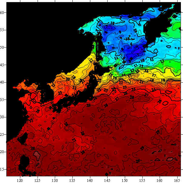 o 2004년 9월 10일 북서태평양 광역해양 수온분포 입니다.