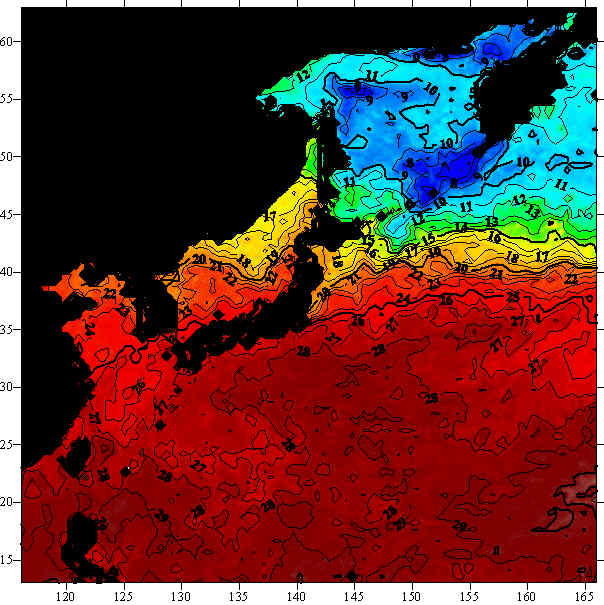 o 2004년 9월 11일 북서태평양 광역해양 수온분포 입니다.