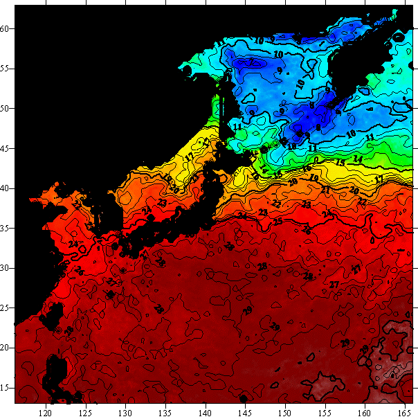 o 2004년 9월 15일 북서태평양 광역해양 수온분포 입니다.