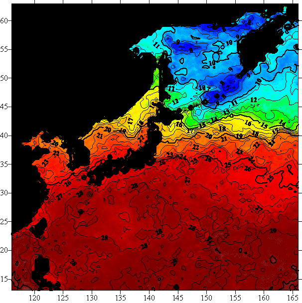 o 2004년 9월 20일 북서태평양 광역해양 수온분포 입니다.