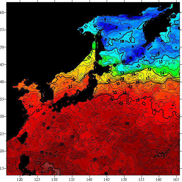 o 2004년 9월 26일 북서태평양 광역해양 수온분포 입니다.