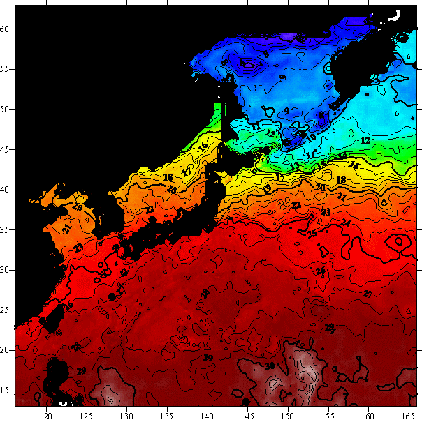 o 2004년 10월 5일 북서태평양 광역해양 수온분포 입니다.