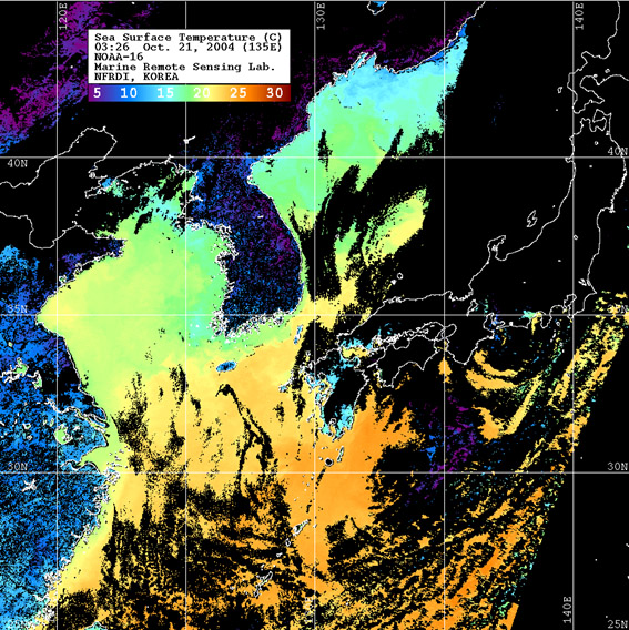 더 많은 위성 수온영상자료(1996년-현재)는 해양원격탐사실 홈페이지로
