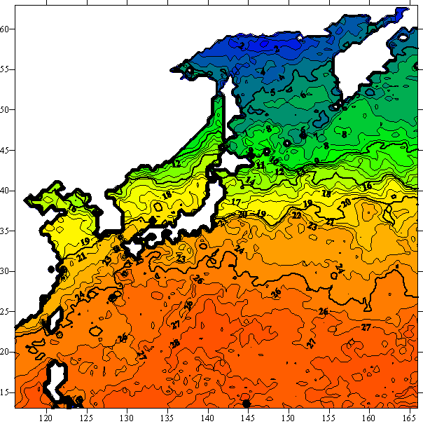 o 2004년 11월 1일 북서태평양 광역해양 수온분포 입니다.