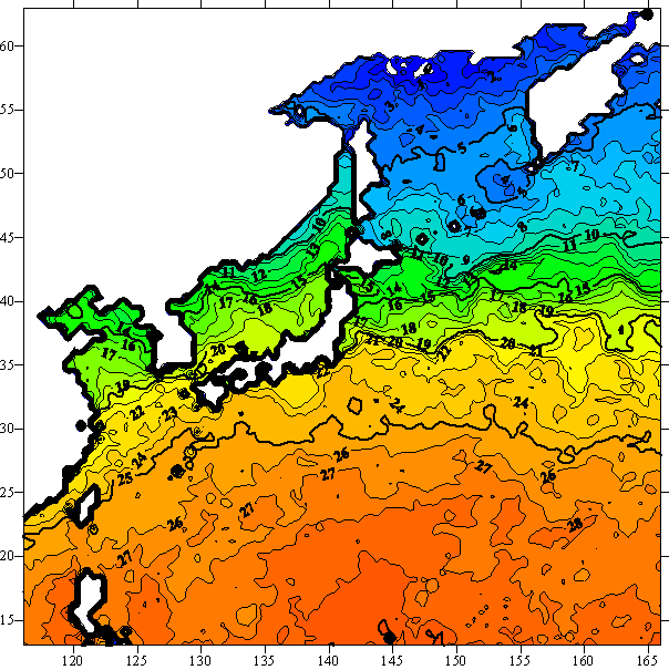 o 2004년 11월 9일 북서태평양 광역해양 수온분포 입니다.
