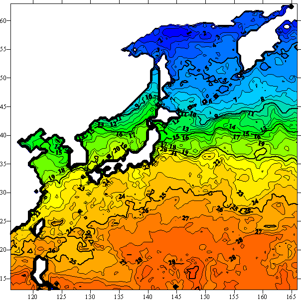 o 2004년 11월 11일 북서태평양 광역해양 수온분포 입니다.