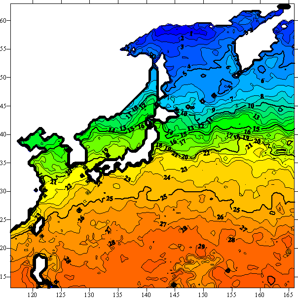 o 2004년 11월 13일 북서태평양 광역해양 수온분포 입니다.
