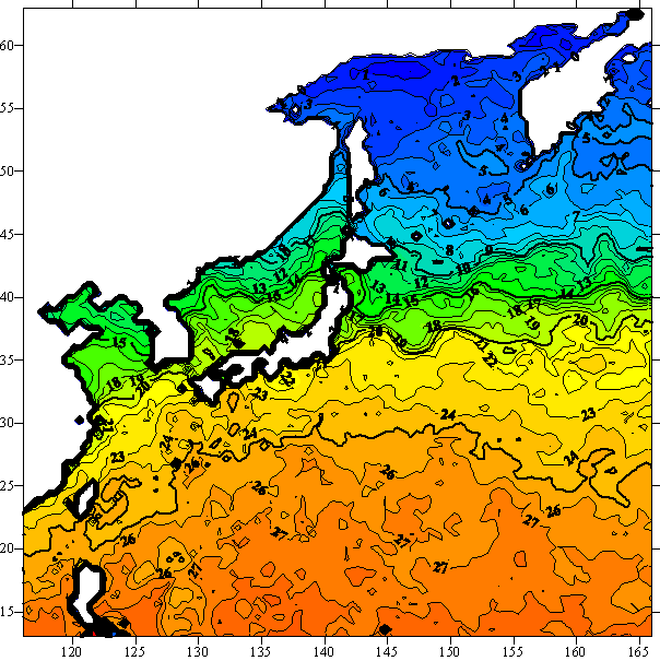 o 2004년 11월 17일 북서태평양 광역해양 수온분포 입니다.