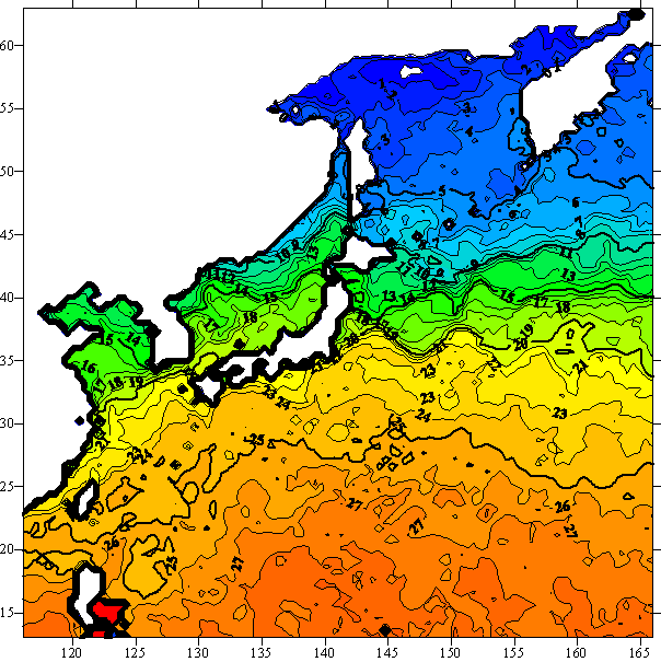 o 2004년 11월 20일 북서태평양 광역해양 수온분포 입니다.