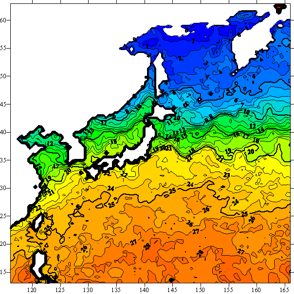 o 2004년 11월 25일 북서태평양 광역해양 수온분포 입니다.