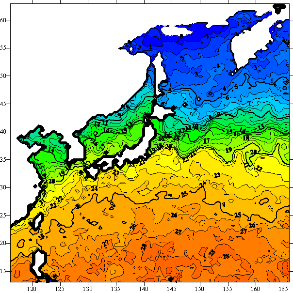 o 2004년 11월 26일 북서태평양 광역해양 수온분포 입니다.