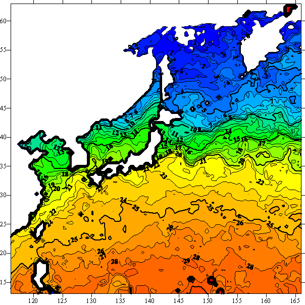 o 2004년 11월 29일 북서태평양 광역해양 수온분포 입니다.