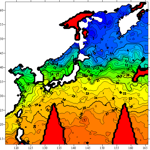 o 2004년 12월 7일 북서태평양 광역해양 수온분포 입니다.
