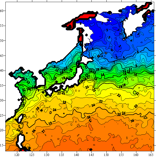 o 2004년 12월 8일 북서태평양 광역해양 수온분포 입니다.