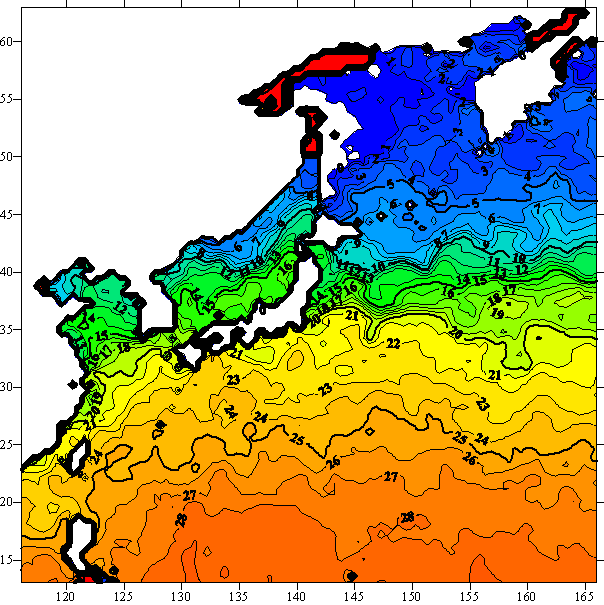 o 2004년 12월 10일 북서태평양 광역해양 수온분포 입니다.