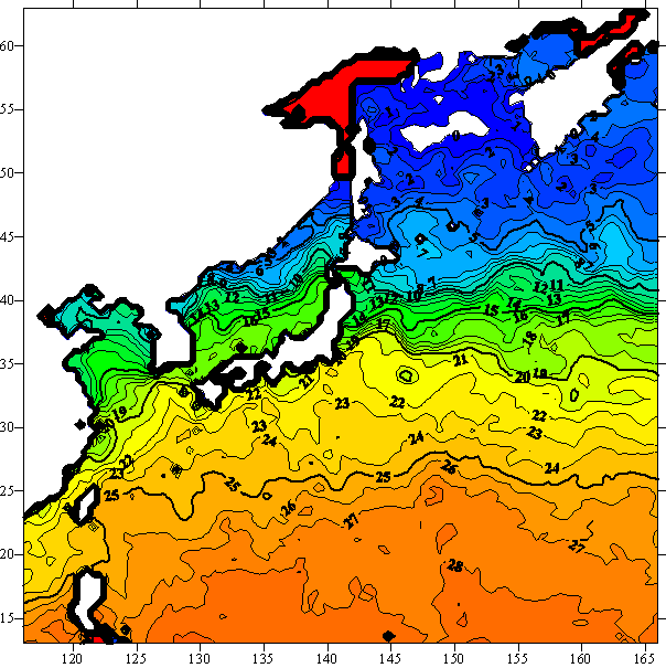 o 2004년 12월 15일 북서태평양 광역해양 수온분포 입니다.