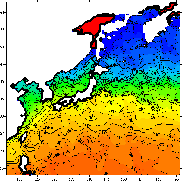 o 2004년 12월 18일 북서태평양 광역해양 수온분포 입니다.