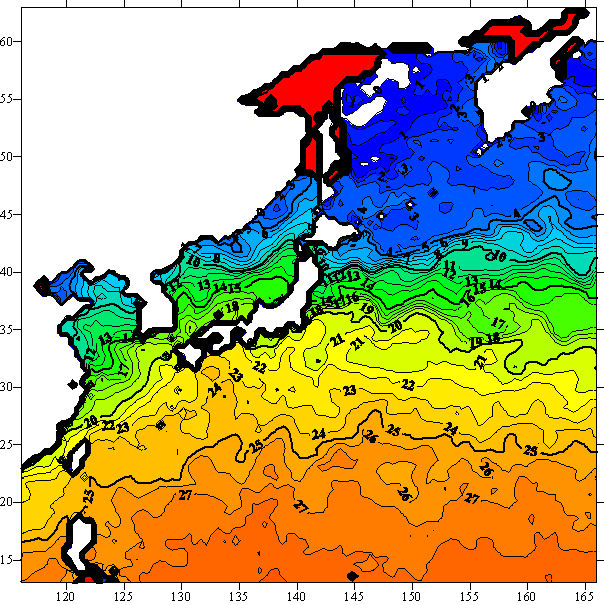 o 2004년 12월 30일 북서태평양 광역해양 수온분포 입니다.