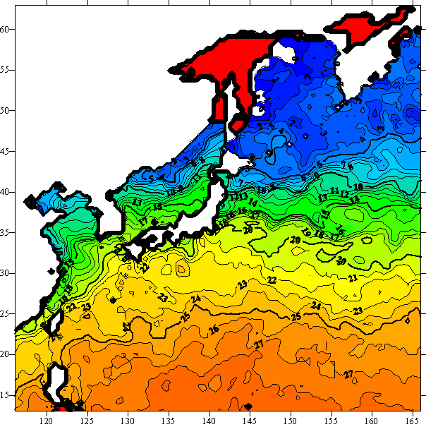 o 2005년 1월 3일 북서태평양 광역해양 수온분포 입니다.