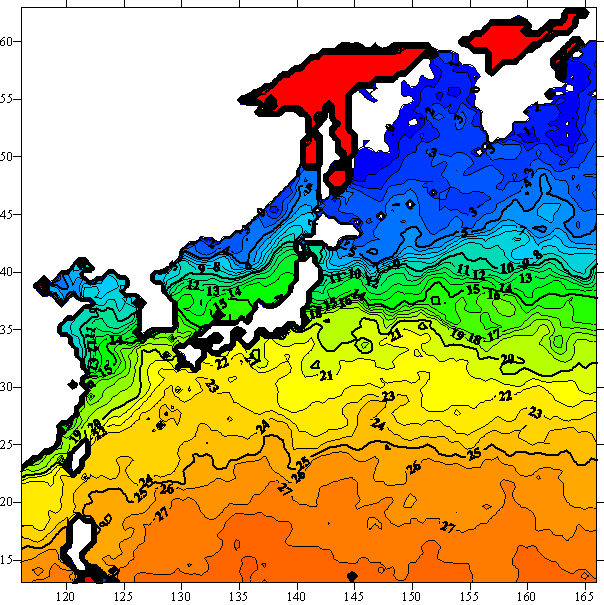 o 2005년 1월 6일 북서태평양 광역해양 수온분포 입니다.